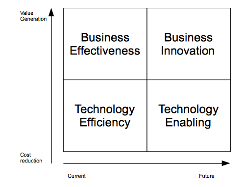 The model introduces four perspectives such as the Technology Effectiveness approach, Business effectiveness, Technology Enabling and the Business Innovation approach.